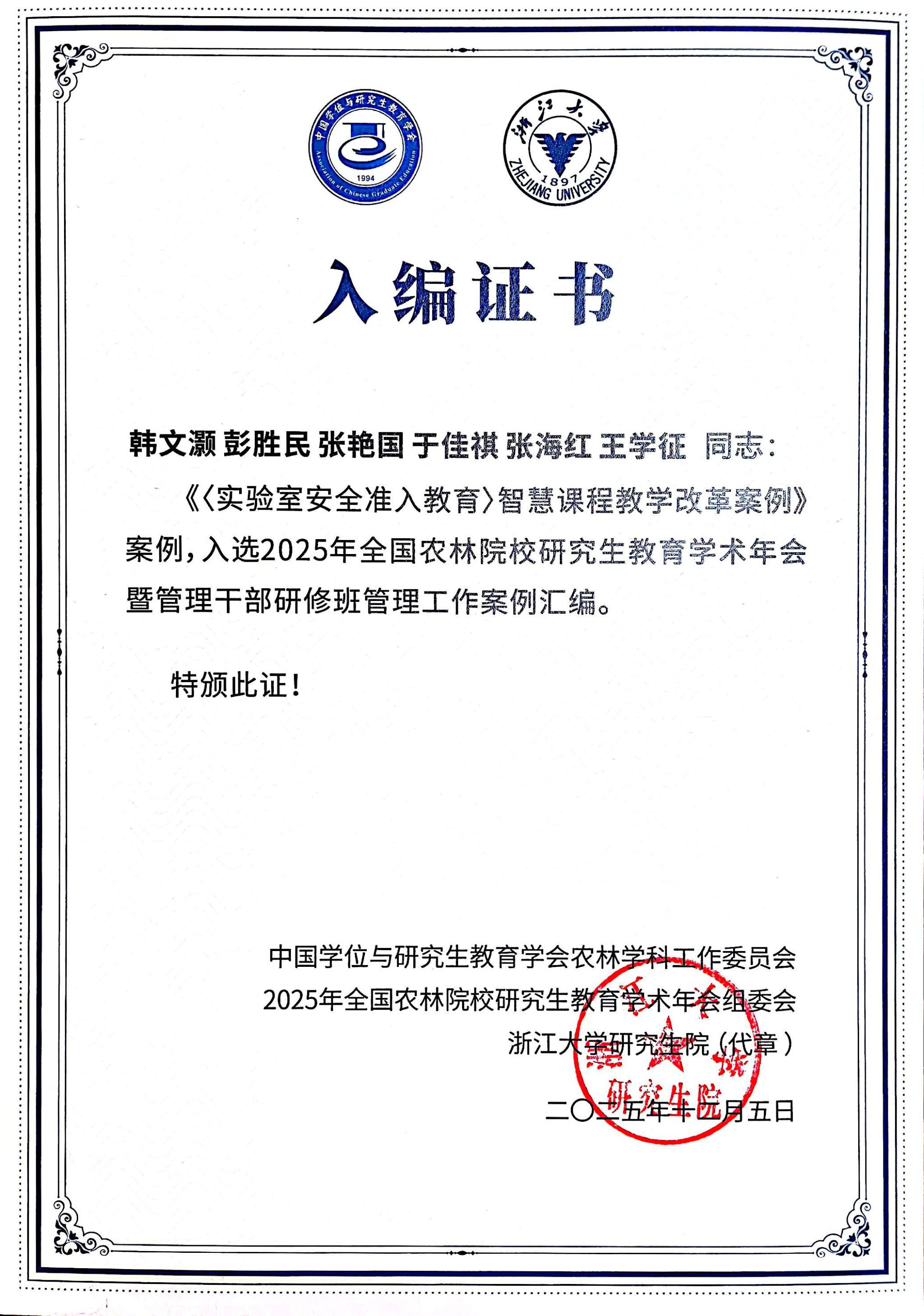 12月5日至8日,2025年全国农林院校研究生教育学术年会暨管理干部研修班在浙江杭州举办。会议由中国学位与研究生教育学会农林学科工作委员会、全国农业专业学位工作委员会主办,浙江大学承办。本次会议主题是“推进融合发展、建设教育强国、服务乡村振兴”。